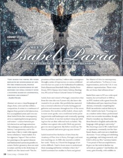 | França, Carlos, Fluctuations, published in a group exhibition catalog by Gallery Fluxus, Porto, June 1989. Gil, José, The Visual Echo, published in solo exhibition catalog by Gallery Fernando Santos, Porto, October 2000. Glucksmann, Christine Buci, The Pictorial Aura of Vestiges, published in solo exhibition catalog by Gallery Fluxus, Porto, February 1990. Cartographies or Icartographies, published book for Laalit Kala Akademy, New Delhi, India, 1998. Hatherly, Ana, Ichonology of Abstraction, published in solo exhibition catalog by Gallery Fernando Santos, Porto, January 1995. Judice, Nuno and Isabel Pavao, “Ten Impressions of Rose and Sea”, book published in Portuguese/French/English by Pagine D’Arte, Lugano, Switzerland, April 2016. Lamb, Charles, Cartographies, published in solo exhibition catalog by Conjunto Cultural da Caixa, Gallery Newter Michelon, October 2005, Sao Paulo, Brazil Lawrence, Eduard Mutt, Palimpsest Strategy, Arts & Auctions Magazine, n.º 25, year 6, October/November 2002. Pavao, Isabel, “The Heart is a Drowning Object”, in collaboration with Katherine Vaz, Apple Book, published by Artist’s Proof Editions, Charlottesville, Virginia, USA, October 2019. Isabel Pavão, book published in solo exhibition by Gallery Bertrand at Chiado, Edition Bertrand, Lisbon, November 1988. Impulse and Strategy in “Vestiges series”: an Examined Project, Doctoral Dissertation published by New York University, New York, May 1994. Psyche Boundaries, Exhibition Catalog, New York, February 2007. Cartography of the Feminine, published in book “Portuguese Women in the US”, by Arte Institute, New York, November, 2013 “Ten Impressions of Rose and Sea”, in collaboration with Nuno Judice, book published in Portuguese/French/English by Pagine D’Arte, Lugano, Switzerland, April 2016. Peyré, Yves, Meeting in the Utopia of Certainity, postface to the book “Ten Impressions of Rose and Sea”, book published in Portuguese/French/English by Pagine D’Arte, Lugano, Switzerland, April 2016. Pinto, António Cerveira, Los Angeles, published in solo exhibition catalog by Museum of Natural History, Lisbon, May 1993. Sabino, Amadeu Lopes, The Venice Blue, published in solo exhibition catalog by Caixa Geral de Depósitos, Paris, 1989. Text published in Arts & Literature Journal, March 1989. |